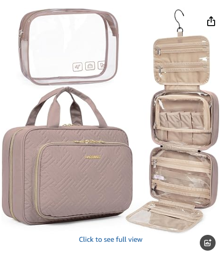 BAGSMART Toiletry Bag Hanging Travel Makeup Organizer with TSA Approved Transparent Cosmetic Bag Makeup Bag for Full Sized Toiletries, Medium-Black Images |